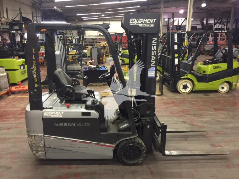 2012 Nissan TX40 89/258″ Quad Mast, 3 Wheel Electric, 36 Volt, Side Shift, Forks, LBR, Lights, 2 Units Available