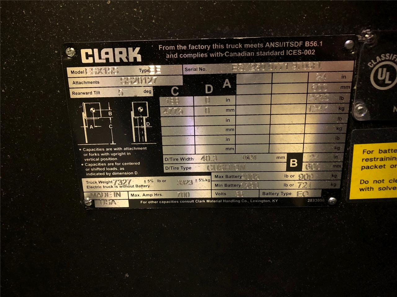 2018 CLARK ESX15S STAND UP END CONTROL FORKLIFT