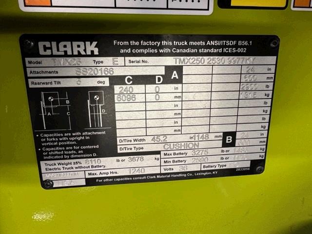 2022 CLARK TMX25 ELECTRIC FORKLIFT