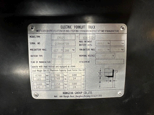 2023 HANGCHA FB25LI ELECTRIC FORKLIFT