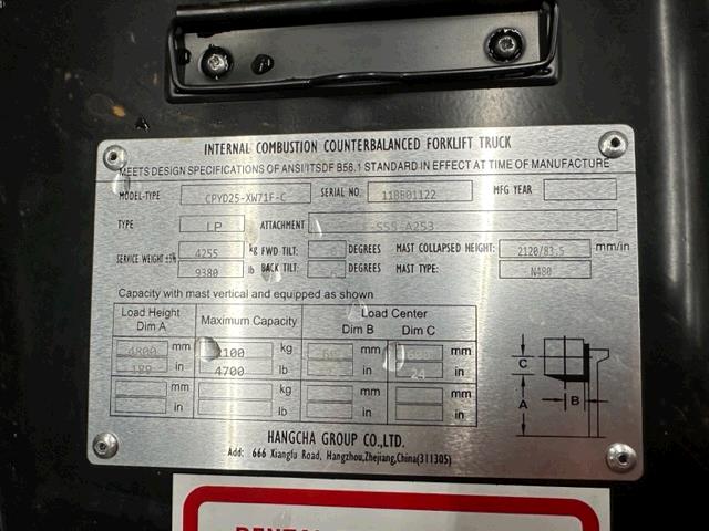 2023 HANGCHA FP25C FORKLIFT