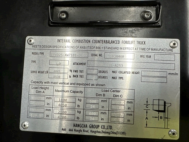2023 HANGCHA FP25CP FORKLIFT