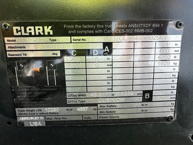 2024 CLARK S25C QUAD MAST FORKLIFT