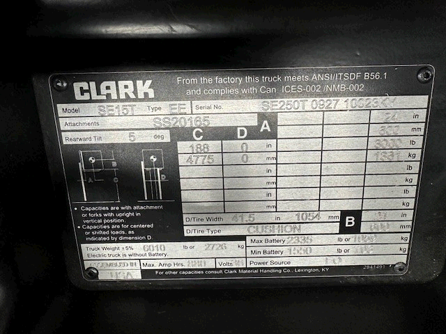 2024 CLARK SE15T ELECTRIC FORKLIFT
