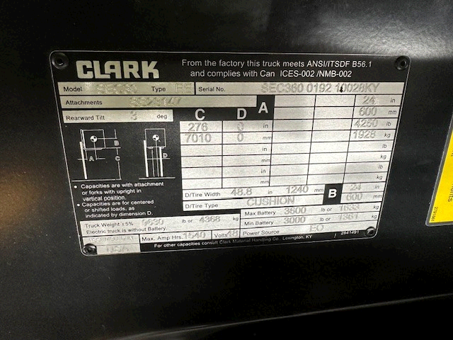 2024 CLARK SEC30 QUAD MAST ELECTRIC FORKLIFT